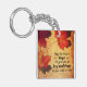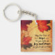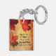 Nyckelkedjan för inspirationstecken i citattecken visar en höstdesign i löv med rött, gult och grönt fall Maple-löv på en struktur-bakgrund med strålbeige. Bible Verse Romans 15:13: "Må Gud av hopp fylla dig med all glädje och fred som du litar på honom."
