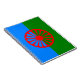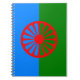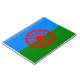 Den här utformningen präglas av den romska flagga, som är det romska folkets flagga internationell. Flagga består av en blå bakgrund och en grönt som representerar himlen respektive jorden. Den innehåller också en 16-talad rödchakra, eller katten, i mitten, som representerar det romska folkets resande tradition och även är en hyllning till Indiens flagga. Flagga godkändes av företrädare för olika romska befolkningsgrupper vid den första världskongressen för romer (WRC), som hölls i Orpington 1971.