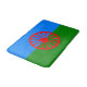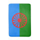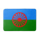 Den här utformningen präglas av den romska flagga, som är det romska folkets flagga internationell. Flagga består av en blå bakgrund och en grönt som representerar himlen respektive jorden. Den innehåller också en 16-talad rödchakra, eller katten, i mitten, som representerar det romska folkets resande tradition och även är en hyllning till Indiens flagga. Flagga godkändes av företrädare för olika romska befolkningsgrupper vid den första världskongressen för romer (WRC), som hölls i Orpington 1971.
