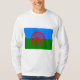 Den här utformningen präglas av den romska flagga, som är det romska folkets flagga internationell. Flagga består av en blå bakgrund och en grönt som representerar himlen respektive jorden. Den innehåller också en 16-talad rödchakra, eller katten, i mitten, som representerar det romska folkets resande tradition och även är en hyllning till Indiens flagga. Flagga godkändes av företrädare för olika romska befolkningsgrupper vid den första världskongressen för romer (WRC), som hölls i Orpington 1971.