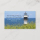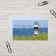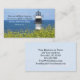 Affärskortet för inspirationsfull anpassningsbar skildrar en svart och vit fyr med söt gula blommor och en blå havs- och himmel-bakgrund och har Bible Verse Romans 15:13, "Må Gud av hopp fylla dig med all glädje och fred som du litar på honom."-