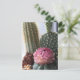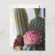 Ett starkt rosa blommar-kaktus poppar ur det här vykortet med bibelromer 8:37.