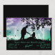 Romantisk silhuett av ett par under ett träd med fullmåne i bakgrunden och några fjärilar. Bakgrunden är en stjärnklar, molnig lila och grön himmel. Perfekt för ett elopement-kort eller en förlovningsfest.