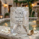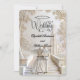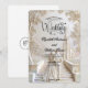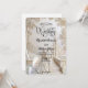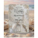 Skapa en ton av tidlös elegans med denna konstnärliga design med en romantisk katedralvy i en varm neutral färgpalett. Ett sofistikerat val för formella unioner. Denna design har en detaljerad, digital illustration som härmar utseendet på traditionell reliefkonst eller 3D-skulpturerat papper. Scenen visar en brud och en brudgum sedda bakifrån, stående högst upp på en storslagen trappa i en gotisk katedral, inramad av välvda trädgrenar och invecklade blad. Färgpaletten använder nyanser av kräm, varmt beige och mjuka pastellhöjdpunkter för att skapa en monokrom, vintage-estetik. Typografin följer en formell hierarki, blandar fantasifull dekorativ skrift för namn med rena serif-typsnitt för detaljer, vilket säkerställer god läsbarhet mot