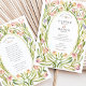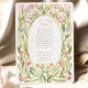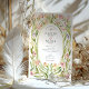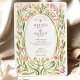 Inbjudan dina gäster till firande i tidlös romantik med den här utsökta bröllopsinbjudan som inspirerats av Art nouveau. Den här vackra designen har en graciös, handmålad vattenfärg gräns av stiliserade magnoliliknande blommor, blomning i en mjuk, drömmande palett av rosa, persikor, gräddvit och lavender. Eleganten, de sammanflätande stammarna och den sage grönt löven bildar på ett konstgjort sätt ett ovalt ram kring dina detaljer om bröllop, som är inneslutna av en charmig, handmålad streckad gräns i ett mjukt guld hue. Perfekt för en romantisk trädgård, vår eller konstnärligt firande i bröllop, denna inbjudan är en ton av känslig och sofistikerad charm.