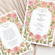 Inbjudan dina gäster i tidlös stil med den här Art nouveau-inspirerade bröllopsinbjudan. Den här designen har en vackert återgiven vattenfärgsillustration av delikat rosa ros och fjällar, sammanflätad med elegant, löv och stammar av föränderlig grönt. Den botaniska teckningen, som påminner om århundradets romantiska vändning, skapar en häpnadsväckande oval ram i skuggor av det antika guld, som på ett perfekt sätt omger personlig bröllop. Den sofistikerade typografin, som kombinerar ett klassiskt serif-teckensnitt med ett snyggt skript, förbättrar vintagen och det konstnärliga känslan. Denna inbjudan är perfekt för en romantisk trädgård, vintage-temad eller vår/sommar-bröllop, som lovar en dag fylld av elegans och skönhet.