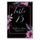 Romantisk elegant svart, rosa blommigt bordsnummer för mottagning av bord.