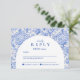 An elegant graduation celebration design featuring a delicate blue toile floral border inspired by classic European porcelain and vintage botanical prints. The intricate florals frame a clean arched center panel, creating a refined and timeless composition that highlights the graduate’s name and event details beautifully. Soft blue tones against a crisp ivory background give the design a sophisticated yet celebratory feel. Perfect for a stylish graduation gathering with a classic, romantic aesthetic.