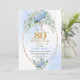 Romantic Blue Hydrangea Gold Floral 80th Birthday Inbjudningar