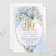 Romantic Blue Hydrangea Gold Frame 90th Birthday Inbjudningar