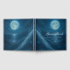 For your wedding reception this romantic wedding guest book features a blue moonlit beach with white script that reads "Guest Book" along with your names and wedding date to personalize. The spine also has a title for you to customize. Image AI generated.