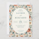 This elegant wedding invitation features a central oval frame surrounded by an intricate floral pattern, creating a romantic and sophisticated atmosphere. The color palette includes soft peach, blush pink, creamy white, and sage green, harmoniously blending to evoke warmth and celebration. The design showcases stylized flowers with detailed petals, arranged in a balanced composition that frames the classic serif typography within the oval. Perfect for a formal wedding, this invitation combines natural beauty with artistic charm, setting the tone for a joyous occasion.
