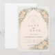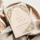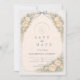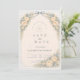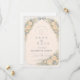 A romantic vintage rose arch frames this timeless garden wedding design, featuring soft blush blooms, sage greenery, and a warm parchment background. The structured botanical border creates an elegant vertical silhouette, while the classic serif typography adds refined, old-world charm. Perfect for formal garden ceremonies, estate venues, and couples who love traditional floral elegance with a European touch.