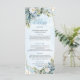 Romantic Boho Blue Peonies White Guld Dinner Menu Meny