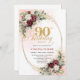 Romantic Boho Deep Red Flowers Gold 90th Birthday Inbjudningar