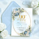 Romantic Boho Dusty Blue Flowers 90th Birthday Inbjudningar