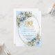 Celebrate a milestone moment with this elegant Sweet Sixteen invitation, featuring a refined watercolor design of dusty blue florals blended with soft white flowers and fresh eucalyptus greenery. Framed by a shimmering gold glitter border and paired with graceful script lettering, this invitation sets a sophisticated tone for a truly unforgettable Sweet Sixteen, Sweet 16th, or 16th birthday celebration.