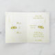 Den mjuka, vita och gyllene designen med två ring gör elegant och romantisk detta bröllopsinbjudningskort för att göra det personligt att lägga till i din egen text.