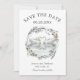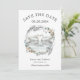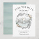 En romantisk perfekt med bröllop spara datum-kort för vår, sommar- eller fallbröllop med ett par vitt svanar som är vänt mot varandra. En underbar vattenfärgskisserad och blommigt andedräkt omger svanar med off-vit ros och efterföljande grön i blå grönt. Anpassa med dina uppgifter genom att redigera textmallen för enkel använda.