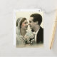 Vintagen färgade fotografi av ett romantiskt par ny gifta. Bron bär en slöja som är typisk för 1900-talet i tidigt. Fina klistermärken som kan användas för flera syften - grattisar på bröllop, lycklig-årsdagen eller en möhippa-gåva.