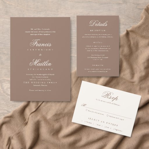 Romantic Brown Elegant Wedding Invitation SuiteDesignad av Cynthia