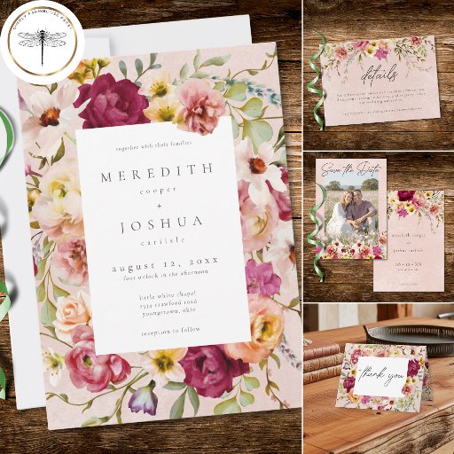 Romantic Burgundy Blush Floral Garden Photo Spara Datumet