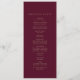 Detta romantiska burgundära calligraphy-monogram-bröllopsprogram är perfekt för ett enkelt bröllop. Den moderna klassiska designen har finare-snurrar och vitaktiga blomningar med elegant elegant-handskriven faux champagne guld-typografi. Ta med par initialer, parets namn, bröllop-datum och -plats, tack, serviceordning, bröllopsfest och ett minnesmärke "i kärleksfullt minne" som tillval. Obs! Den här designen har inte äkta guld-folie. Det är en grafik av hög kvalitet som framställs som guld-folie.