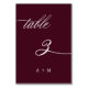 Romantic Calligraphy Bröllop Number 3, Burgundy Bordsnummer