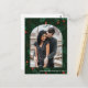 Christmas kisses and holiday wishes abound with this festive and romantic mistletoe pattern postcard. Fill the modern arch with your favorite couple photo and add your custom Xmas message in white over the botanical green background.