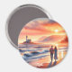 Romantic Coastal Sunset Lighthouse Walk Magnet