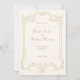 Fånga det centrala i det tidlösa romantik med vår romska Cream Guld Vintage bröllopsinbjudan till Löv. Denna inbjudan är perfekt utformad med vintage-inspirerade detaljer och lyxkrämer och guld accents, och den är elegant och sofistikerad. Det invecklade löv-motivet tillför ett inslag av naturskönhet och charm, perfekt för par som vill ha en klassisk och romantisk estetik för sin speciella dag. Varje detalj är tankeväckande designad för att skapa en känsla av opulens och förfining, från elegantens typografi till de skuggande markeringarna på guld folie.