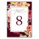 Romantic Deep Burgundy Floral Bridal Shower Bordsnummer