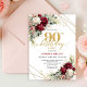 Romantic Deep Red Gold Floral 90th Birthday Invite Inbjudningar
