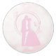En vacker romantisk bröllop-design av de kyssande silhuetterna av bruden och brudgummen mot en drömmande rosa bakgrund.