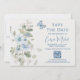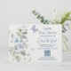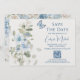 Romantic Dusty Blue Blommigt QR Code Bröllop Spara Datumet