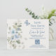 Romantic Dusty Blue Blommigt QR Code Bröllop Spara Datumet