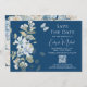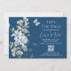 Romantic Dusty Blue Blommigt QR Code Bröllop Spara Datumet