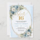 Romantic Dusty Blue Greenery Sweet Sixteen Invite Inbjudningar