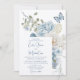 Romantic Dusty Blue Watercolor Blommigt Bröllop Inbjudningar