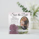 De här vackra datumkorten är det perfekt sättet att låta dina vänner och familj få veta om ditt kommande bröllop. De har en elegant som är utformad med en enda dammig ro eller en rosa färgad ro som reflekterar i en bassäng av vatten med vinkara och krämer med foto i en ovalformad ram. Rubriken läser Spara datum med utrymme för namnen, datum och plats. Baksidan är en marmorerad damm ro färg.