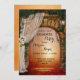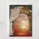 Inbjudan till förlovningsfest med en förändrad skogsscen med en gateway som leder till ett magiskt ljus i skogen. Bröllop med och elfenben ro och vintagen lantern ge inbjuder till en romantisk atmosfär.