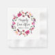 De romantiska sagorna är lyckliga efter att bröllop-napkins är perfekter för ett trädgårdsbröllop. Utformningen har rosa, persika och lila vattenfärg ro och peonier som är arrangerade i en vacker blommigt ram. Anpassa blöjorna med namn från bruden och brudgummen.