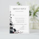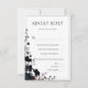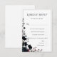 Elegant dark floral RSVP card featuring a clean minimalist layout with a refined botanical accent and modern editorial typography. This sophisticated reply card is designed for clarity and ease of use, allowing guests to respond effortlessly while maintaining a cohesive and luxurious wedding stationery suite. The combination of soft neutral tones and moody floral details makes it perfect for romantic, modern, or dark floral weddings.