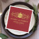 Romantic gold red elegant calligraphy wedding design features fancy swirls and whimsical flourishes with gorgeous elegant hand lettered faux champagne gold foil typography. Personalize the napkins with the names of the bride and groom, and the wedding date. These napkins can be used for the wedding reception, rehearsal dinner, engagement party and more! Please Note: This design does not feature real gold foil. It is a high quality graphic made to look like gold foil.