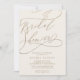 Den romantiska kalligrafielvoriska inbjudningskort för möhippan i guld är perfekt för en enkel möhippa. Den moderna klassiska designen har finare-snurrar och vitaktiga blomningar med elegant elegant-handskriven faux champagne guld-folie-typografi. Obs! Den här designen har inte äkta guld-folie. Det är en grafik av hög kvalitet som framställs som guld-folie.