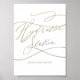 Denna romantiska kalligrafihydrering i guld som poster station är perfekt för ett enkelt bröllop. Den moderna klassiska designen har finare-snurrar och vitaktiga blomningar med elegant elegant-handskriven faux champagne guld-typografi. Obs! Den här designen har inte äkta guld-folie. Det är en grafik av hög kvalitet som framställs som guld-folie.