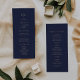 Det romantiska bröllopsprogrammet med marinmarinmarinens marinmonogram i guld är perfekt för ett enkelt bröllop. Den moderna klassiska designen har finare-snurrar och vitaktiga blomningar med elegant elegant-handskriven faux champagne guld-typografi. Ta med par initialer, parets namn, bröllop-datum och -plats, tack, serviceordning, bröllopsfest och ett minnesmärke "i kärleksfullt minne" som tillval. Obs! Den här designen har inte äkta guld-folie. Det är en grafik av hög kvalitet som framställs som guld-folie.