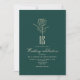Enkel, modern, elegant, formell, romantisk smaragd grönt och guld bröllopsinbjudan, med monogram överst.