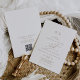 Den här romantiska guld-monograminbjudan med QR-kod på framsidan och baksidan är perfekt för ett enkelt bröllop. Den moderna klassiska designen har finare-snurrar och vitaktiga blomningar med elegant elegant-handskriven faux champagne guld-folie-typografi. Spara papper genom att inkludera en QR-kod för gästen för att visa information, OSA eller båda. Obs! Den här designen har inte äkta guld-folie. Det är en grafik av hög kvalitet som framställs som guld-folie.