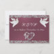 Utformningen har ett känsligt rulla hjärta och duvor på en elegant lavender-bakgrund med glitter gräns, snyggt-skriptinnehavare ställe för datum på framsidan och svarsinformation på ett vitt pärlstöd. Perfekt för det enkla till de flesta elegant bröllop. Finns även med olika bakgrunder för färgad för temat färg i bröllop. (Glitter simuleras i teckningen). Designad för samordning med "två ska bli en - Hearts, Doves & Glitter"-samlingen för Bröllop. Om du vill ändra information klickar du på "Anpassa". Om du vill flytta texten eller ändra texten storlekt, teckensnitt eller färg klickar du på "Klicka för att anpassa ytterligare"